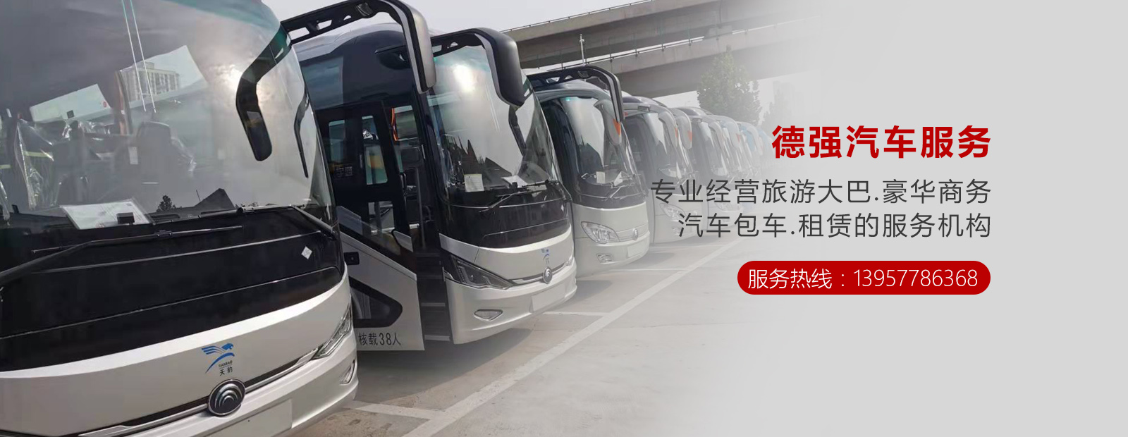 溫州德強(qiáng)汽車服務(wù)有限公司是溫州市一家經(jīng)國(guó)家政府部門批準(zhǔn)的合法經(jīng)營(yíng)汽車服務(wù)有限公司,專業(yè)經(jīng)營(yíng)旅游大巴.豪華商務(wù).汽車包車.租賃的服務(wù)機(jī)構(gòu)。 公司服務(wù)范圍廣泛:為社會(huì)各界人士.政府機(jī)關(guān).企事業(yè)單位.外商外資.廠礦團(tuán)體等提供旅游包車.各種商務(wù)用車.單位公務(wù)用車.機(jī)場(chǎng)接送.動(dòng)車接送.溫州包車.會(huì)議租車.班車接送等服務(wù), 滿足您的需要,為君的生活、旅游、商務(wù) 提供優(yōu)質(zhì)、安全的服務(wù)保障。本公司車輛…